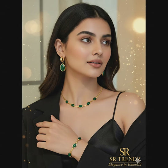 Product Name: Oval Green Crystal Pendant Necklace Set With Bracelet Package Contains: It has 1 Necklace Set with 1 Bracelet Material: Stainless Steel Color: Gold Work: Gold Plated Occasion: Casual Combo: Pack of 1 Ideal for: Women Weight: 100